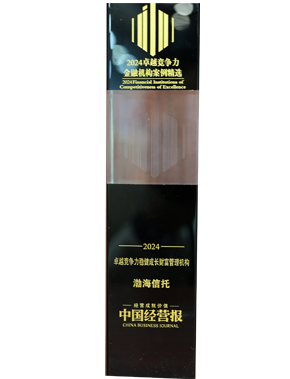 四十余年風(fēng)云激蕩,四十余年歲月輝煌。渤海信托用發(fā)展的智慧、變革的決心、有恒的堅(jiān)持與審慎的經(jīng)營(yíng),不斷豐富著“海納百川、志存高遠(yuǎn)、銳意革新、穩(wěn)健務(wù)實(shí)”的品牌內(nèi)涵。憑借在公司治理、信托業(yè)務(wù)、公益慈善、品牌建設(shè)等領(lǐng)域的不懈努力,公司獲得監(jiān)管機(jī)構(gòu)、合作機(jī)構(gòu)、權(quán)威媒體、社會(huì)公眾的廣泛認(rèn)可。公司連續(xù)多年被稅務(wù)機(jī)關(guān)評(píng)為“納稅信用等級(jí)A級(jí)納稅人”、連續(xù)3年入選“河北服務(wù)業(yè)企業(yè)100強(qiáng)”,并榮獲“誠信托·管理團(tuán)隊(duì)獎(jiǎng)”、中證金牛獎(jiǎng)等多項(xiàng)權(quán)威獎(jiǎng)項(xiàng),公司影響力、知名度和美譽(yù)度不斷提升。