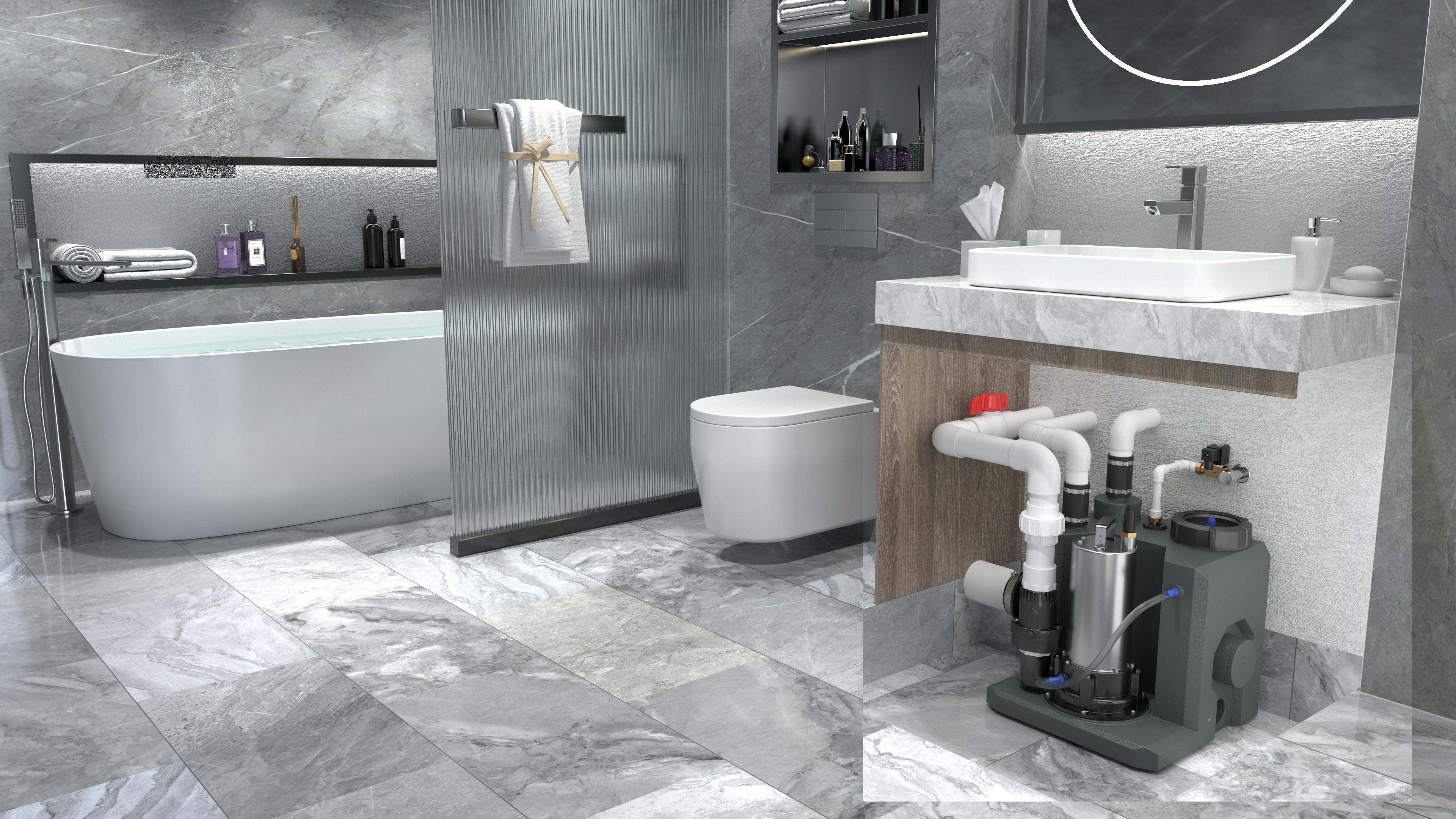 衛生間可以說是利用污水提升器排水,比較常見的應用場景了,因為這滿足了我們最基本的需求,因此是比較常見的排水單元。