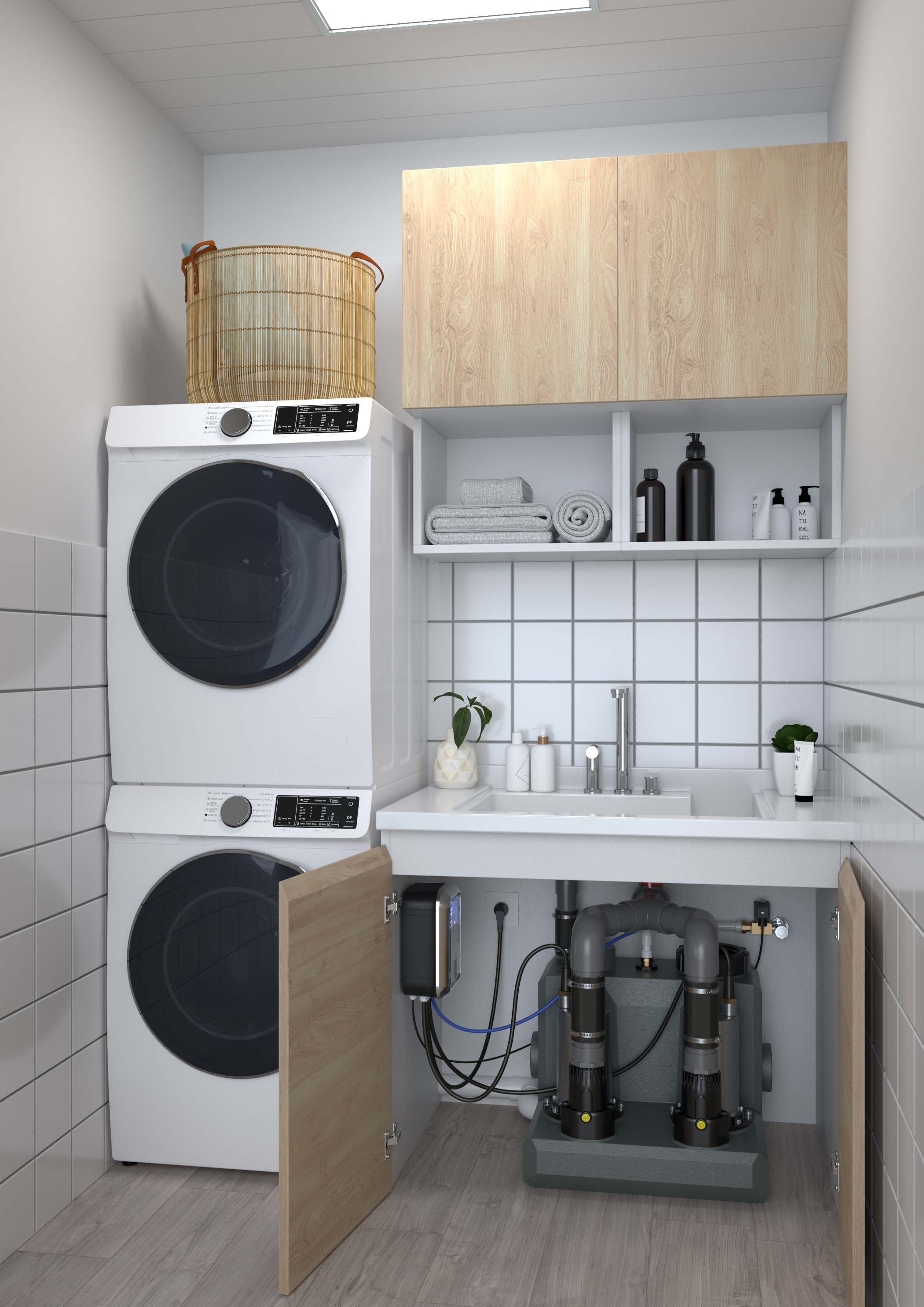 洗衣房的排水根據洗衣機的容量選擇相應流量的智能污水提升器,這種問題就讓傳統污水提升器解決的基礎上升了級,使用感大大得到提升。