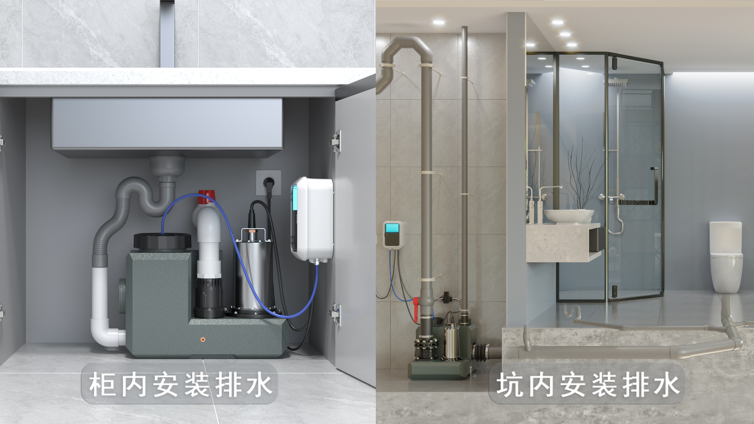 那我們就得知道這種有地下室排水點的空間,就需要用污水提升器來解決地下室的排水的,否則地下室安裝衛生間的想法就沒有辦法實現了。