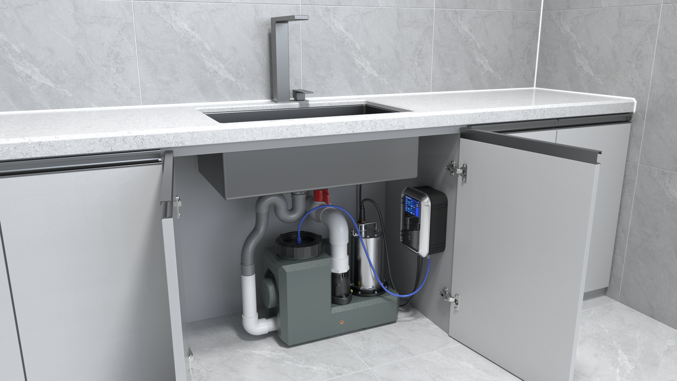 智能污水提升器是一種高效的設備,可以將污水從低處提升至高處的管道中。它由泵、電機、液位探測器和控制裝置組成,能夠自動監測并控制污水的水位變化,保證排水系統的正常工作。因此,智能污水提升器可以將水吧臺的廢水快速、穩定地進行排放,有效地解決了水吧臺排水問題。