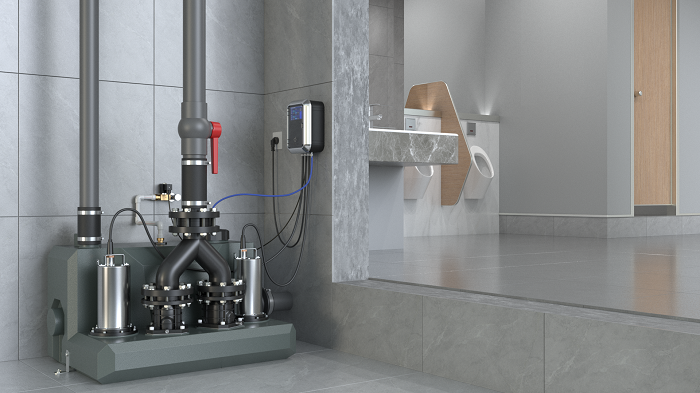 一般來說,商用公共場景使用,為預防可能出現的意外狀況,配備雙電機更為穩妥。也就是大家常說的,一用一備雙泵系統。污水提升雙泵系統,日常工作模式為兩臺電機輪流工作,遇有臨時大流量排水情況,則兩臺電機同時啟動工作,快速排空污水。
