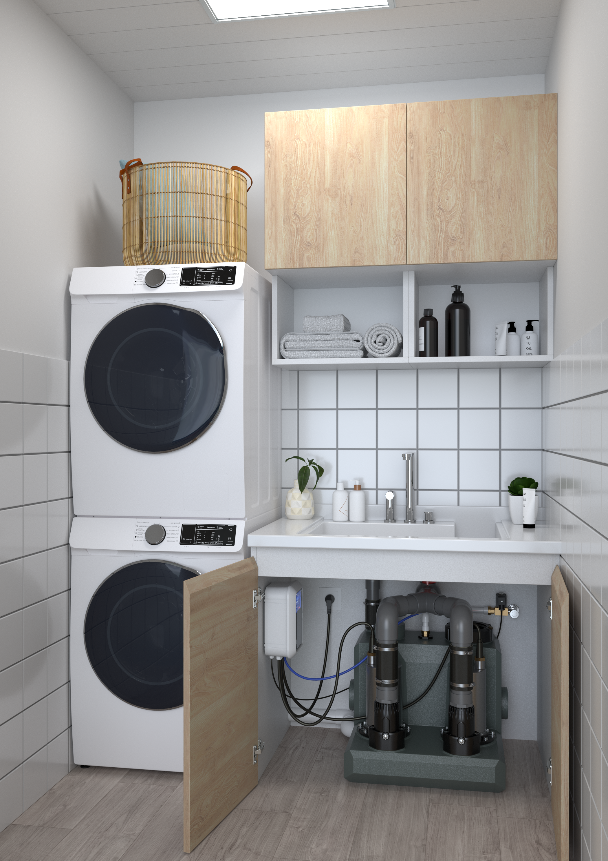 現(xiàn)在大多數(shù)家庭排水都會(huì)用污水提升器來(lái)解決,就是將地下室的用水通過(guò)污水提升器匯總集中排放到樓上的主排污管道中,這樣工程量小還方便。