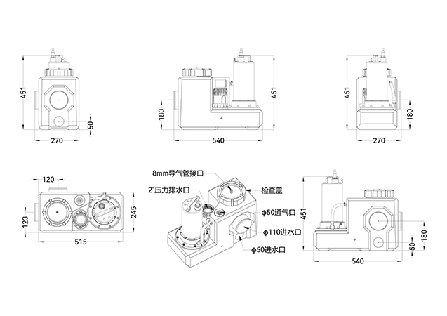 · 入水口:2×Φ110,2×Φ50 出水口:1*Φ63/Φ75/Φ50